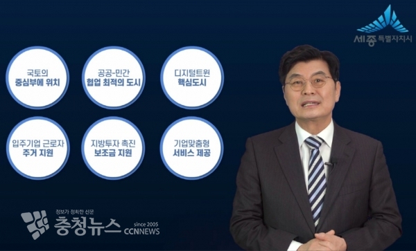 이 시장은 기업유치를 위한 홍보영상 제작에 참여해 투자 여건, 발전 가능성, 산업단지 등 세종시가 갖춘 산업인프라에 대해 직접 설명했다.