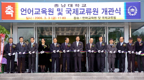 충남대학교가 국제화에 대한 전문성 증대와 외국유학생들의 급증, 외국대학과의 교류가 활성화되면서 외국어교육 및 외국관련 전문 행정서비스에 대한 수요가 높아지고 있는 가운데 이에 대비하여 신축된 글로벌 인재 양성을 위한 언어교육원과 국제교류원의 개관식을 갖게 되었다.