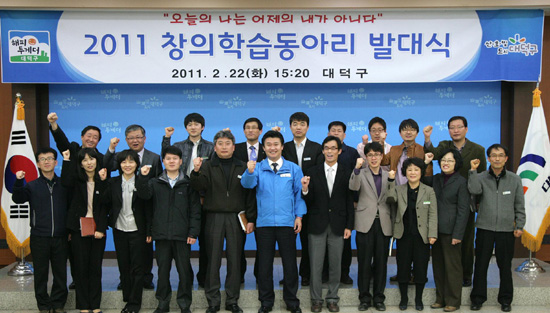 대전시 대덕구(구청장 정용기)는 22일 구청 중회의실에서 자기변화를 주제로 창의적이고 신선한 아이디어가 풍부한 직원으로 구성한 학습동아리 13개팀 102명이 한데 모여 2011년 발대식을 개최했다.
