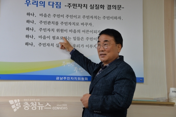 박종권 세종시 금남면 주민자치회장(66)은 충청뉴스와 인터뷰를 통해 “주민들이 참여하는 주민자치회 내실화에 최선을 다하겠다”고 밝혔다.