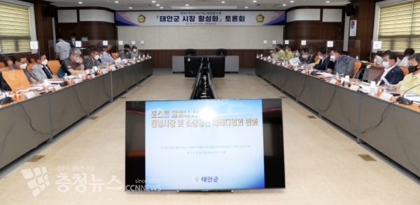 이번 토론회는 태안군의회, 태안군상인회, 태안군이 ‘공감과 소통’을 통해 코로나19 장기화로 침체된 지역 시장의 당면현안을 해결하고 보다 실효성 있는 시장 경제활성화 방안을 함께 모색하고자 마련되었다.