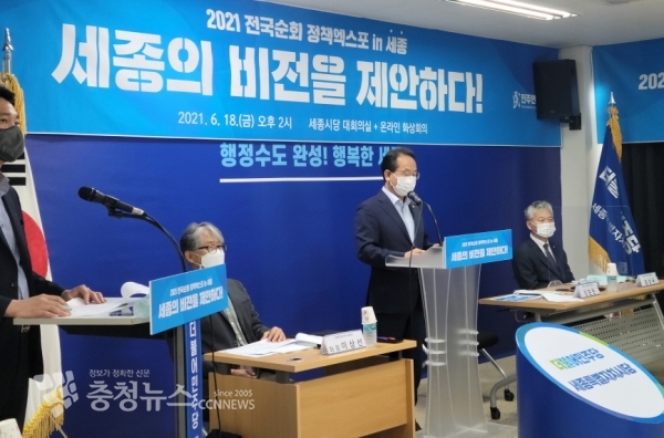 세종의 현안 및 의제 발굴을 위한 이번 정책엑스포에서 세종시당 강준현 위원장은 ‘세종의 발전 전략, 지나온 10년 앞으로 10년’ 이란 주제로 시대의 변화에 따라 달라져 온 세종시의 모습에 맞는 의제를 제시하고, 홍성국 의원(세종갑)은 ‘혁명의 시대, 대 전환을 헤쳐 나갈 정책 정당’이란 주제로 현 정치계의 변화를 읽고, 더불어민주당이 나아갈 방향 설정을 제시했다. .