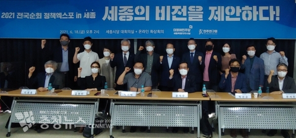 더불어민주당 싱크탱크인 민주연구원은 전국 16개 시·도당 순회 정책토론회·간담회를 진행하며, 세종자치시당과 함께 18일 오후 2시 당사 대회의실에서 ‘2021 전국순회 정책엑스포 in 세종, 세종의 비전을 제안하다’를 개최해 지역 현안·의제 발굴에 나섰다.