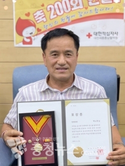 지난 2005년 12월 22일 문을 연 대한적십자사 대전·세종·충남혈액원 공주대학교센터(헌혈의집)에서 200번째 헌혈을 하며, 생명 나눔 봉사를 실천하고 있는 시민이 있어 화제가 되고 있다.