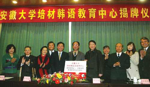 공과대학장, 최정순 한국어교육원장 등이 참석했다. 중국측에서는 안후이성 천시엔쫑(陣賢忠) 교육청장을 비롯, 안후웨이대학 황더(黃德寬)총장 및