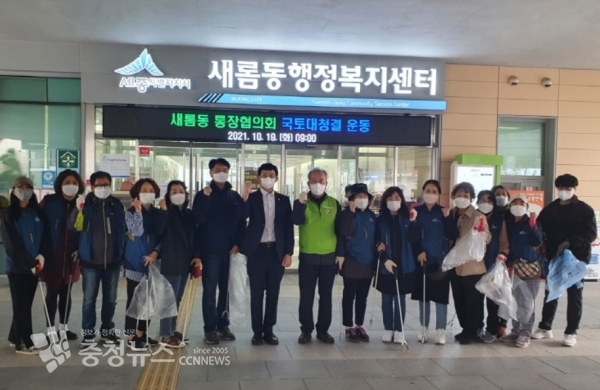 세종특별자치시 새롬동(동장 김산옥)이 19일 새롬동 체육시설 부지, 상가 주변에서 손인수 세종시의회 의원, 통장협의회, 동 관계자 등 25여명이 참여한 가운데 국토대청결운동을 실시했다.