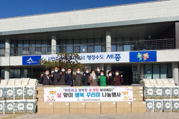 [충청뉴스 최형순 기자] 세종특별자치시 연동면지역사회보장협의체(위원장 윤석춘·채용운)가 설 명절을 앞두고 21일 연동면 복합커뮤니티센터에서 독거노인, 기초수급자 등 취약계층에 총 1,000만 원 상당의 식료품·생필품 꾸러미를 제작해 전달했다.