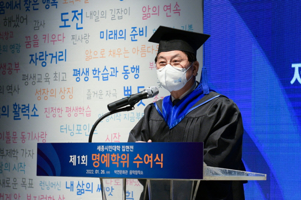 [충청뉴스 최형순 기자] 세종시는 26일 세종시민대학 집현전 강좌 100시간 이상을 이수한 전임학사 48명에게 명예학위를 수여했다.