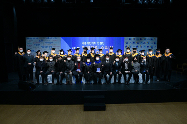 시는 박연문화관에서 세종시민대학 집현전 학습자와 연계학당 대표자 등 60여 명이 참석한 가운데 ‘제1회 세종시민대학 집현전 명예학위 수여식’을 개최했다.
