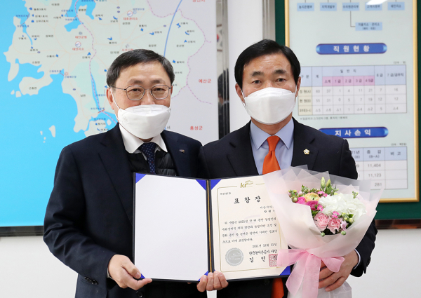 [충청뉴스 최형순 기자] 서산시의회 안원기 의원(인지·부춘·석남)이 "한국농어촌공사 김인식 사장으로부터 표창장을 받았다"고 16일 밝혔다.