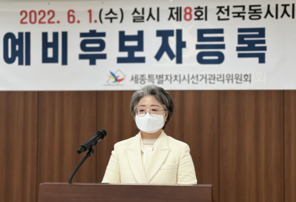 등록후 출마선언을 하는 강미애 세종시교육감 예비후보