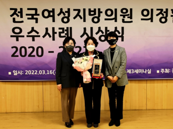 이번 공모전은 전국여성지방의원네트워크(이하 전여네)에서 주최한 행사로, 전여네에서는 전국 여성 지방의원들의 의정활동 역량 강화를 위해 지난 2년동안 펼친 의정활동 우수사례를 공모하고 전문가의 검토를 거쳐 시상하였다.