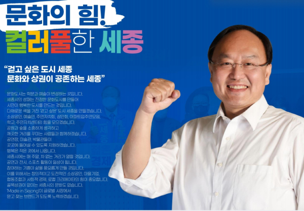 [충청뉴스 최형순 기자] 조상호 세종특별자치시장 예비후보(이하 예비후보)는 5일(화) ‘문화의 힘! 컬러풀한 세종’을 슬로건으로 문화도시 조성과 상권 활성화 공약을 발표했다.