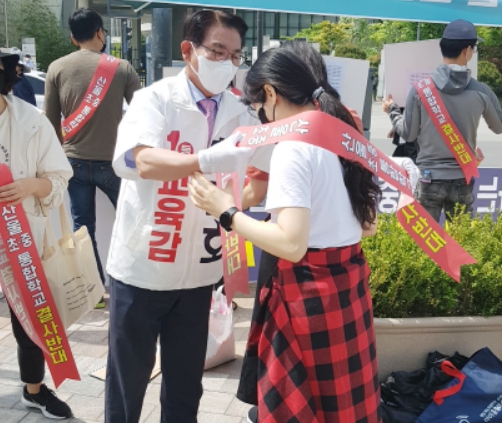최태호 예비후보는 지난 26일에 이어 금번 집회에도 참석해 학부모들을 격려하고 산울초․중 통합 반대 입장을 전했다.