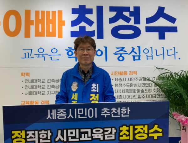 [충청뉴스 최형순 기자] 최정수 세종시 교육감 예비후보는 2일 최정수 선거사무소에서 구성원들의 자율성과 능동적 참여를 보장하는 교육자치 분야의 공약을 발표했다.
