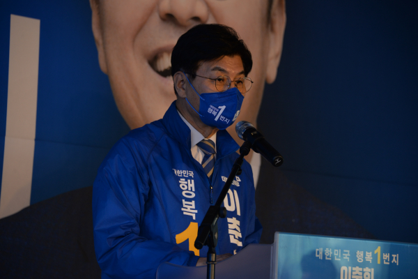 홍성국 의원은 "이춘희 세종시장 후보는 그동안 세종시를 설계하고, 골격을 만들었다"면서 "앞으로 마무리를 잘하여야 38만 시민들과 함께 행복 1번지를 만들것"이라고 지지를 호소했다.