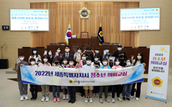 [충청뉴스 최형순 기자] 세종특별자치시의회(의장 이태환)는 9일 본회의장에서 참샘초등학교 5학년 22명을 대상으로 ‘2022년 제1회 청소년 의회교실’을 개최했다.