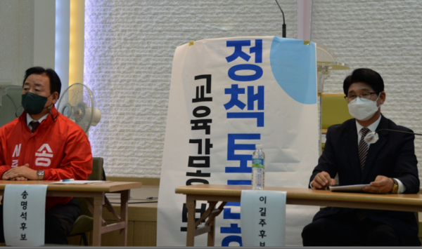 송명석 예비후보의 대학입학 사정관과 관련한 질문에 이길주 예비후보는 “입학사정관을 두겠다는 것이 아니고 지원관제도를 만들어 학생들이 원하는 대학에 갈 수 있도록 궁금증과 진학, 진로를 개척해 나갈 수 있도록 도와주는 것이다”라고 말했다.