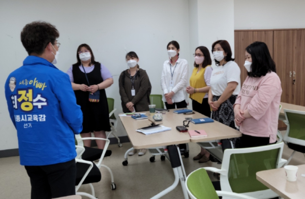 [충청뉴스 최형순 기자] 10일 유권자의 날을 맞아 최정수 세종시 교육감 후보는 세종시 새롬동의 세종특별자치시 가족센터를 찾았다. 해외에서 세종으로 이주해온 여성, 노동자, 가족을 지원하는 기관이다.