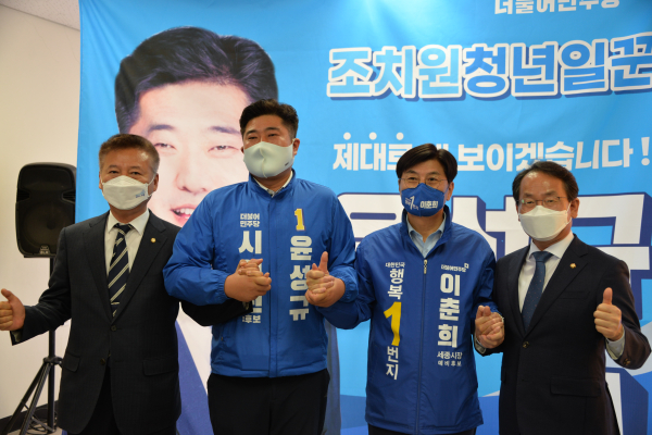 [충청뉴스 최형순 기자] 세종시의회의원선거 제2선거구(조치원읍) 더불어민주당 청년일꾼 윤성규 후보가 14일 선거사무소에서 개소식을 열고 본격적인 선거운동에 돌입했다.