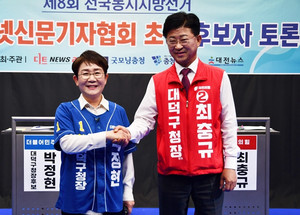 왼쪽부터 더불어민주당 박정현 대덕구청장 후보와 국민의힘 최충규 대덕구청장 후보