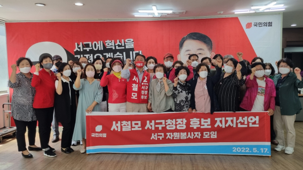 먼저 서구자원봉사 모임 소속 이재규 씨는 “웃으며 기쁜 마음으로 봉사할 수 있는 장을 마련해 달라”며 “청렴과 능력, 인품까지 겸비한 서철모 후보가 서구청장이 돼서 8년 동안 침체돼 있던 서구의 번영을 이뤄주길 바란다”고 소망했다.