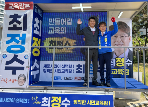 유권자들은 관망하지만 후보자들에겐 사활은 건 선거이다. 각 후보의 치열한 선거전이 시작된 가운데 세종시 교육감 선거에 나선 최정수 후보의 유세차량에 평창올림픽 금메달리스트 신의현 선수가 올라 지지를 호소해 눈길을 끌었다.