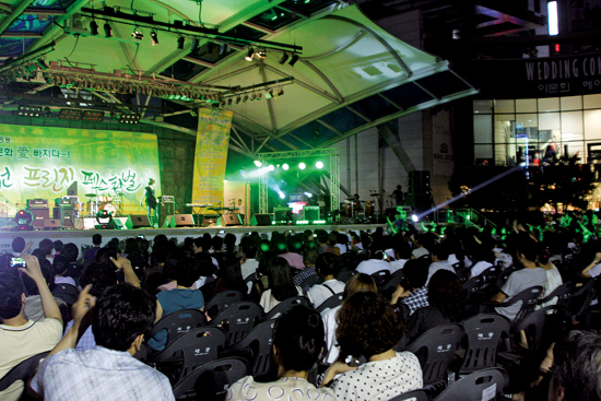 저녁에 열린 공연은 대흥동보다 은행동에 사람이 더 몰렸다. 힙합 공연이 무대에 올랐던 날에는 사람 사이를 비집고 지나갈 만큼 구경하는 이가 많았다. 대흥동 우리들공원은 은행동 축제현장과 비교하면 상대적으로 텅 비어 보였지만 행사가 열리는 동안 사람들이 꾸준히 공연을 보러 왔다.