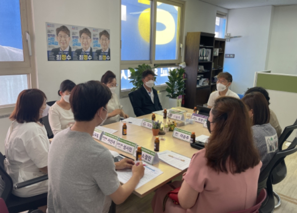 25일 오전 세종시 학교운영위원장협의회(이하 학운위)와 최정수 세종시 교육감 후보는 캠프 사무실에서 정책제안간담회를 열고 학운위에서 제안한 교육정책에 대한 입장을 듣고 의견을 나눴다.