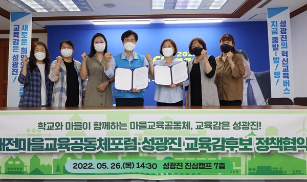 [충청뉴스 이성현 기자] 성광진 대전시교육감 후보에 대한 정책협약 및 지지 선언이 줄을 잇고 있다.