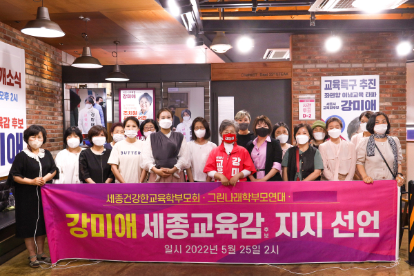 이날 지지선언 대회에는 세종건강한교육학부모회(이하 학부모회)를 비롯해, 대한 교육 바로세우기 운동본부, 그린나래 학부모연대가 자리해 강 후보를 지지하는 뜻을 전했다.