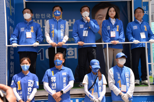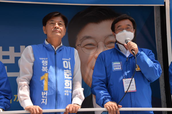 이날 거리유세에는 김경만(비례대표) 의원, 이춘희 시장 후보, 윤호중·박지현 공동상임선대위원장, 강준현(세종을) 의원 등이 함께했다.