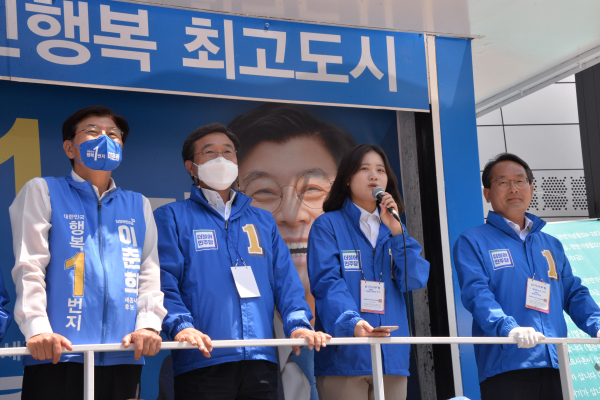 윤호중·박지현, 이춘희 후보 지원 유세...'헌법개정' 약속