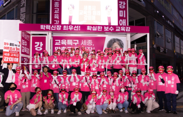그에더해 전국30여 단체가 모인 전학연(전국학부모단체연합)에서 까지 세종교육감으로 강미애를 지지선언했다.