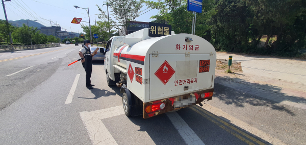 주요 검사 내용은 △위험물 운송 차량 운송자의 자격 취득 및 실무교육 이수 여부 확인 △위험물 수납 용기의 운반기준 초과 여부 확인 △ 차량용 소화기 등 비치 여부 확인 등이다.