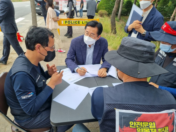 박경귀, 화물연대 파업현장 방문...'적극 소통' 나서
