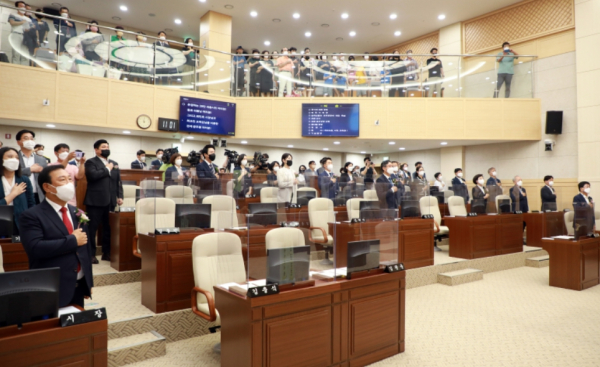 한편, 국민의힘 소속 의원 7명은 부의장 선출과 관련 원 구성에 대한 항의 표시로 불참한 가운데 더불어민주당 소속 의원 13명만 개원식에 참석하여 반쪽 개원식으로 아쉬움을 남겼다.