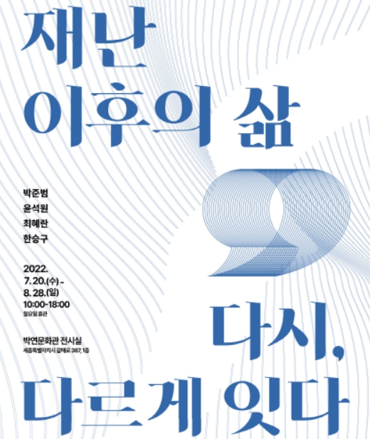 [충청뉴스 최형순 기자] 세종시문화재단(대표이사 김종률)은 오는 20일부터 기획전시 '재난 이후의 삶 : 다시, 다르게 잇다'를 박연문화관 전시실에서 개최한다.