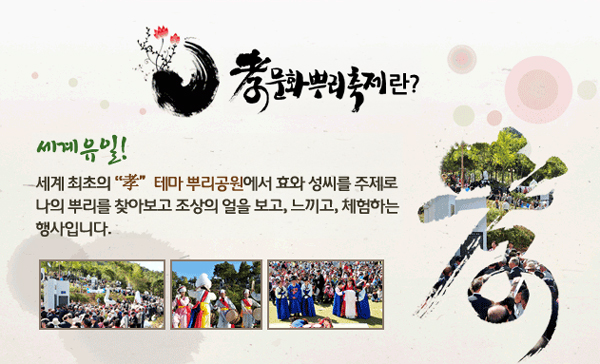 이강혁 시 관광산업과장은 “이번 효 문화뿌리축제는 우리의 전통문화인 효와 뿌리를 현대적 감각으로 프로그램화 하는데 중점을 뒀다”며 “모두가 참여해 함께 즐기고 체험하는 축제가 되것으로 기대된다”고 밝혔다.