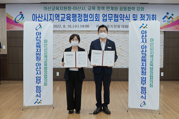 [충청뉴스 박동혁 기자] 충남 아산시는 10일 아산교육지원청과 아산시지역교육행정협의회 구성과 공동협력을 위한 업무협약을 체결했다.