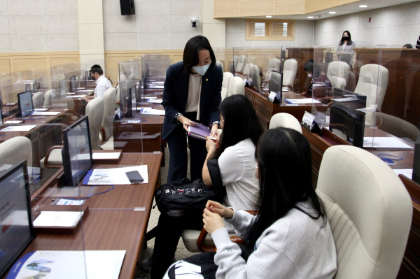 이날 의회교실에서 가온누리 학생과 만난 김효숙 의원(나성동)은 “학생 여러분이 좋은 교육을 받고 안전하게 학교에 다닐 수 있도록 의원으로서 구체적인 방안 마련에 최선을 다하는 중”이라고 밝혔다.