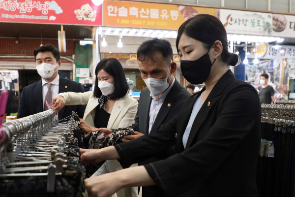 특히, 세종시의원 의원들은 시장 분위기와 애로사항 등에 관한 세종전통시장과 금남대평시장 상인들의 의견을 수렴하고 사회적 거리두기 해제 이후 첫 명절 대목을 맞은 상인들에게 격려의 말을 전했다.