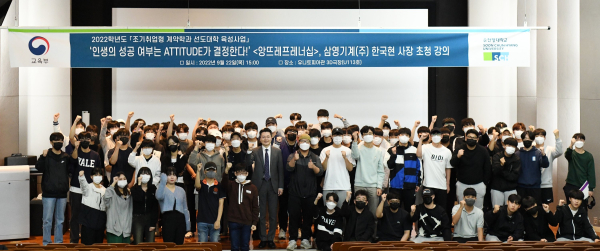 한국현 사장은 이날 스마트팩토리공학과, 스마트모빌리티공학과, 융합바이오화학공학과 소속 재학생을 대상으로 ‘인생의 성공 여부는 ATTITUDE가 결정한다’라는 주제를 가지고 특강에 나섰다.