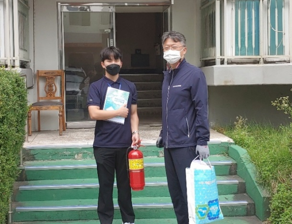 주요 활동 내용은 ▲화재 안전용품(붙이는 자동 소화기) 부착 ▲콘센트 주변 화재 발생 위험물품 정리 ▲소화기 사용법 안내 ▲화재 시 대피로 안내 등이다.