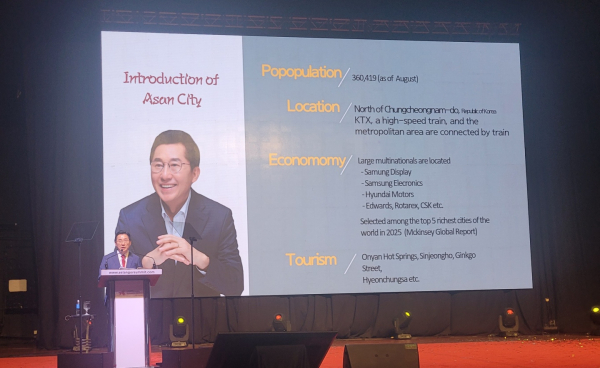 박 시장은 이날 연설에서 “아산시는 대한민국 수출 1위 도시이자 OECD 국가 기준 5위의 GRDP를 자랑하는 경제자립 도시”라고 소개하고, “아산시는 미래 사회에 재빠르게 대응하기 위해 스마트도시 정책에 대한 밑그림을 그리고 있다”면서 ‘AI 기반 스마트도시 통합 플랫폼’, ‘디지털트윈 도시하천 관리시스템 구축’ 등 관련 정책들을 소개했다.