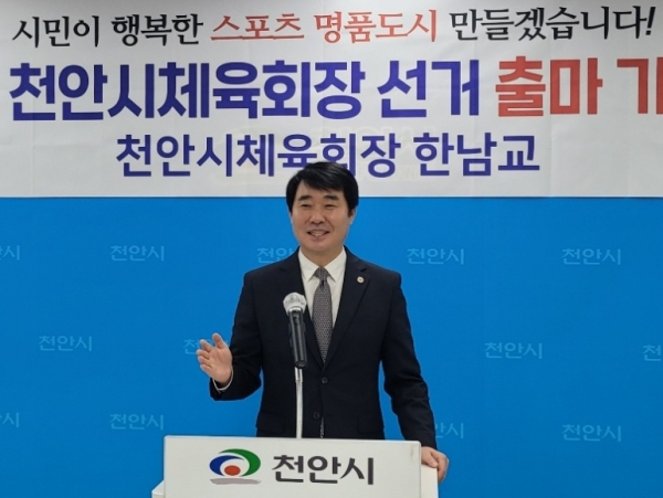 [충청뉴스 박동혁 기자] 한남교 민선 1기 천안시체육회장이 28일 재선에 도전하겠다고 밝혔다.