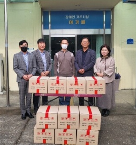 장애인복지시설 '아가페'에 100만 원 상당 물품 전달