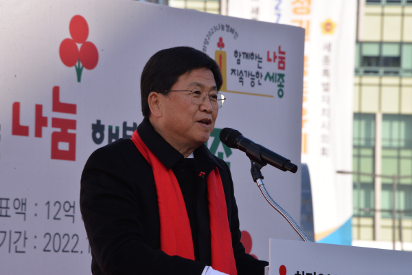 최교진세종시교육감은 "사랑의 온도탑을 10년 동안 매번 100도 이상 목표 이상을 달성했다는 것은 그 무엇보다도 우리 세종 시민들이 정말 더불어 살아갈 줄 아는 따뜻한 마음 사랑의 마음을 가졌다는 것"이라고 엄치적을 치켜 올렸다.