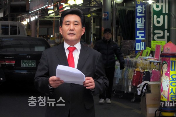 민주통합당 정현태 대덕구 예비후보가 19일 중리시장 앞에서 출마 기자회견을 갖고, 대덕이 어려워진 것은 제대로 된 정치인이 없었기 때문이라고 비판했다.