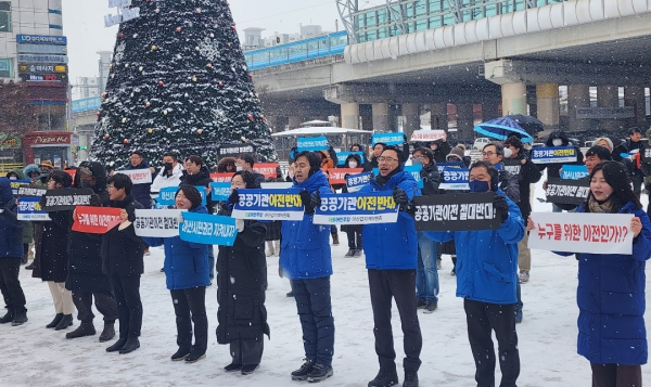 안장헌 도의원(아산 5)은 “우리 시 공공기관을 꼭 지켜내고 아산의 경제와 일자리를 지키겠다는 일념 하나로 이 자리에 섰다”며 “아산 시민의 권리를 없애는 공공기관 이전에 대해 김태흠 도지사에게 반대 의지를 천명하자”고 밝혔다.